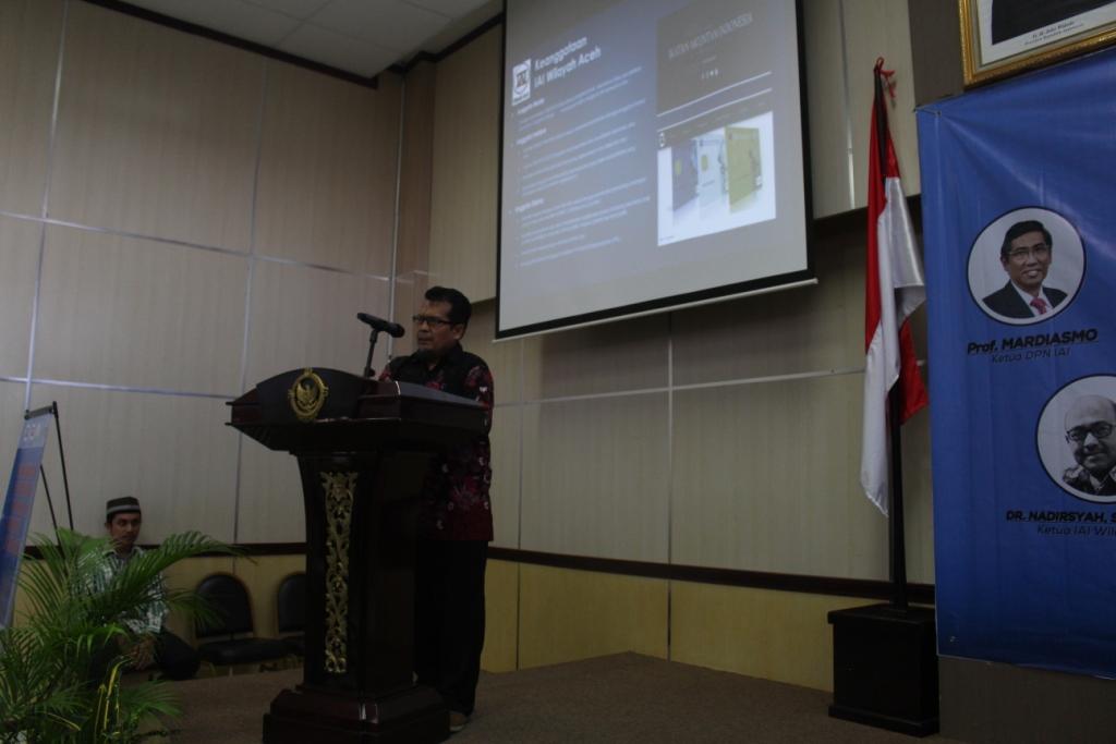 Kata-kata sambutan dari Bapak Dr. Nadirsyah, SE., M.Si., Ak., CA selaku Ketua Ikatan Akuntan Indonesia (IAI) Wilayah Aceh, selanjutnya di iringi dengan budaya tarian Aceh yang dipersembahkan untuk para hadirin dan tamu undangan pada acara tersebut dan juga lantunan lagu indonesia raya.